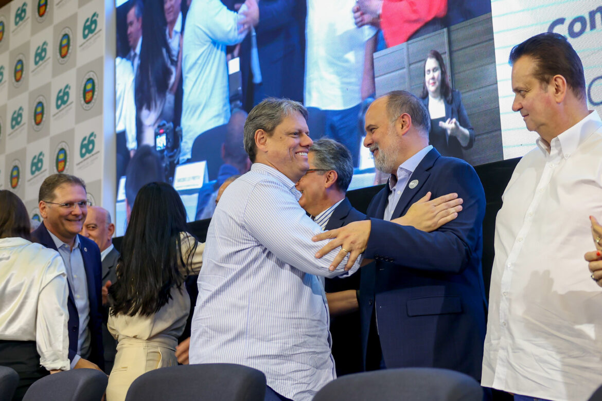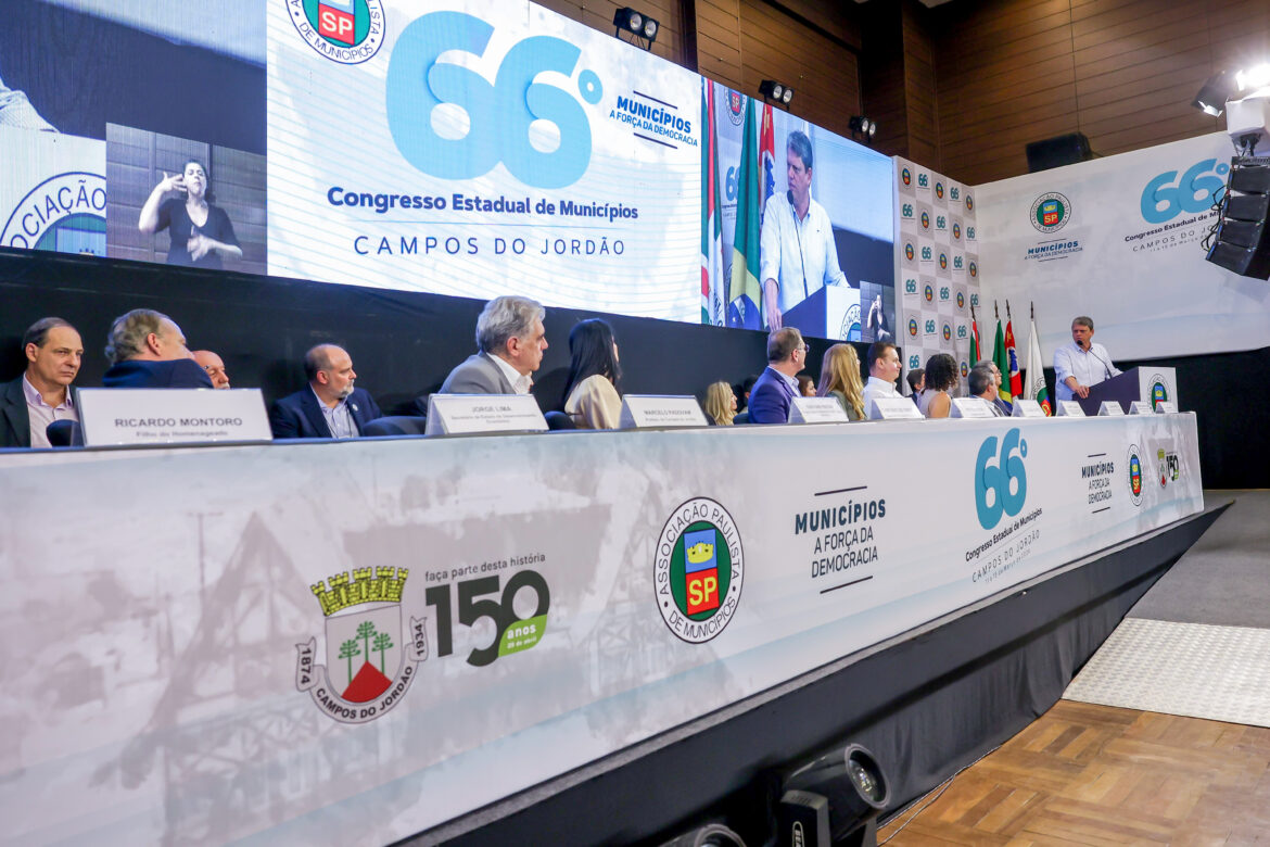 O governador Tarcísio de Freitas reforçou nesta sexta-feira (15), em Campos do Jordão, o compromisso de parceria entre o Estado e as 645 prefeituras para implementação de políticas públicas que fortaleçam o desenvolvimento, a dignidade e o diálogo em todo o território paulista. Tarcísio foi o principal participante da cerimônia de encerramento do 66º Congresso Estadual de Municípios, que reuniu autoridades dos poderes Executivo, Legislativo e Judiciário de todas as esferas para debates sobre inovação na gestão pública.