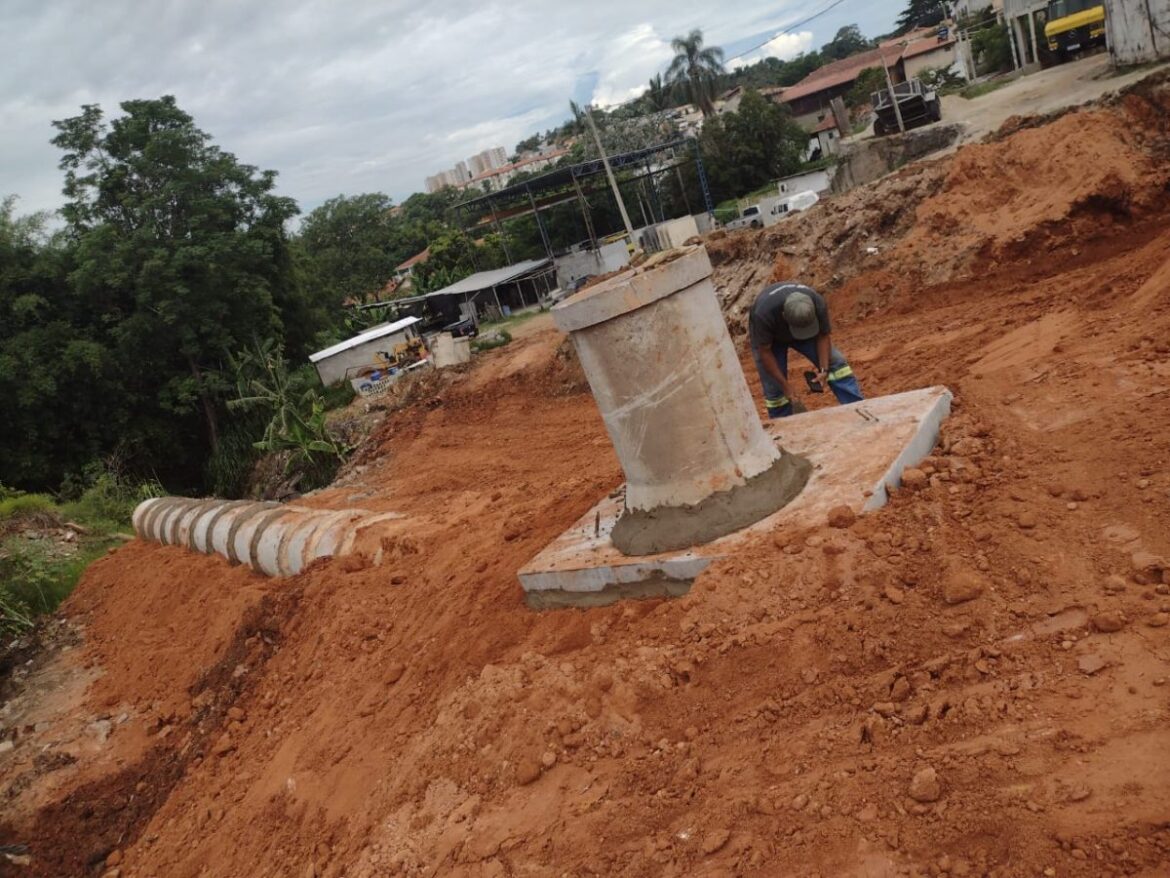 No local, os profissionais do setor de galerias executaram a recomposição e o prolongamento do sistema de drenagem. Na etapa atual da obra está sendo construído um extravasor, cuja finalidade é escoar um possível excesso de água; o aterro também foi iniciado.