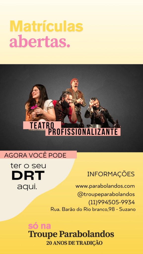 As inscrições para a nova turma do curso técnico já estão abertas, e a escola também oferece outras opções como Teatro Musical, Dublagem e Teatro Livre, voltadas tanto para iniciantes quanto para quem deseja se aprofundar na arte cênica.