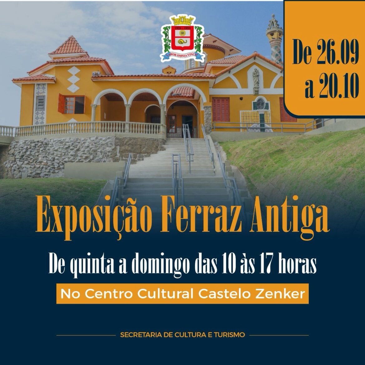 Os ferrazenses e visitantes das cidades circunvizinhas têm até este domingo (20) para visitar a exposição “Ferraz Antiga”, no Centro Cultural Castelo Zenker, no bairro do Castelo. O evento já recebeu mais de três mil pessoas até o momento e a previsão é que este número aumente consideravelmente até o final das visitas.