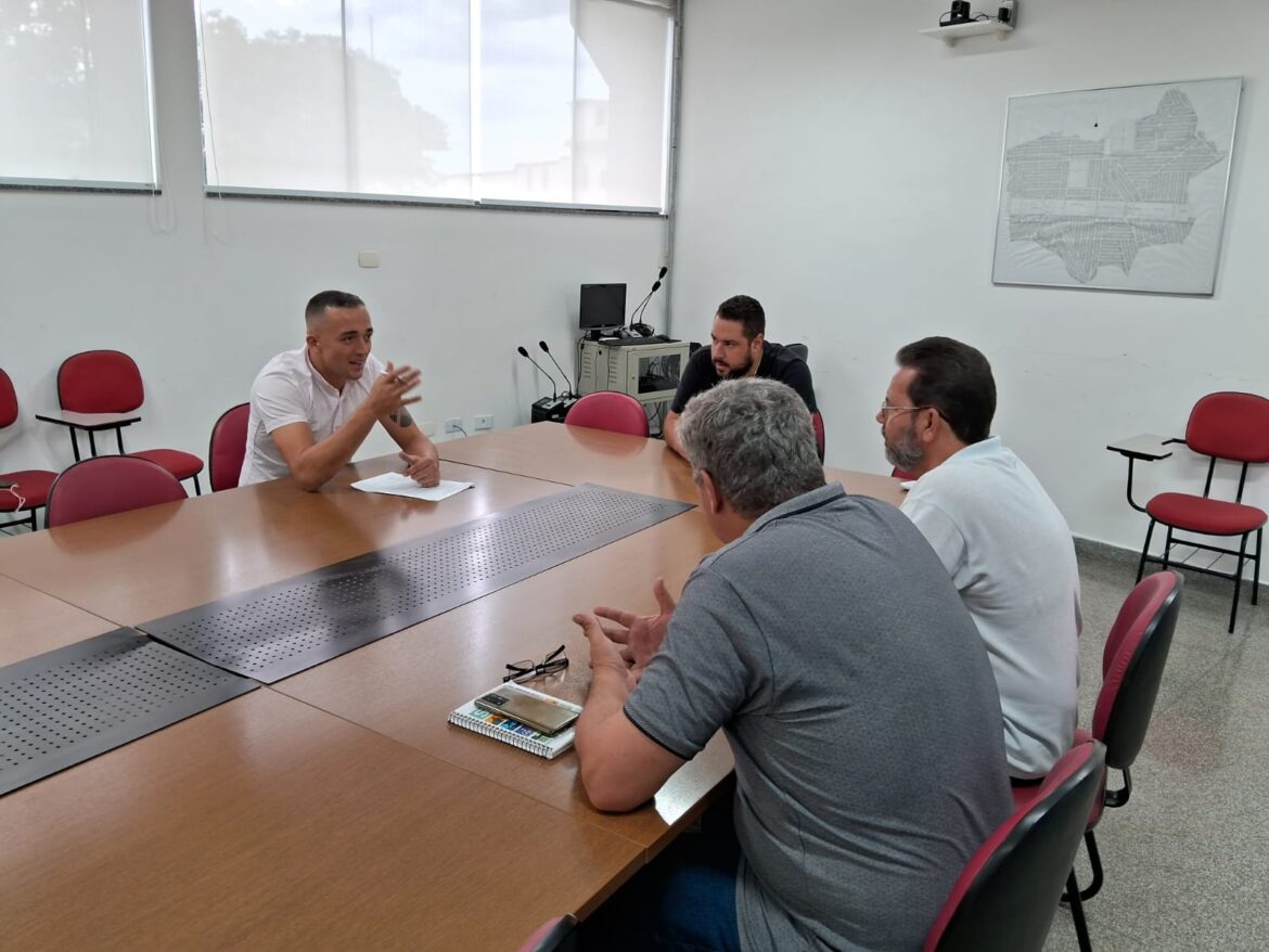 Os vereadores GCM Uelton (União), Rafael Laranjeira (União) e Luiz Fernando (PSD) se reuniram com o Secretário de Segurança Pública da Prefeitura de Arujá, Washington Luis Beolchi Adami, para reivindicar a ampliação de vagas para transportadores escolares do Município.