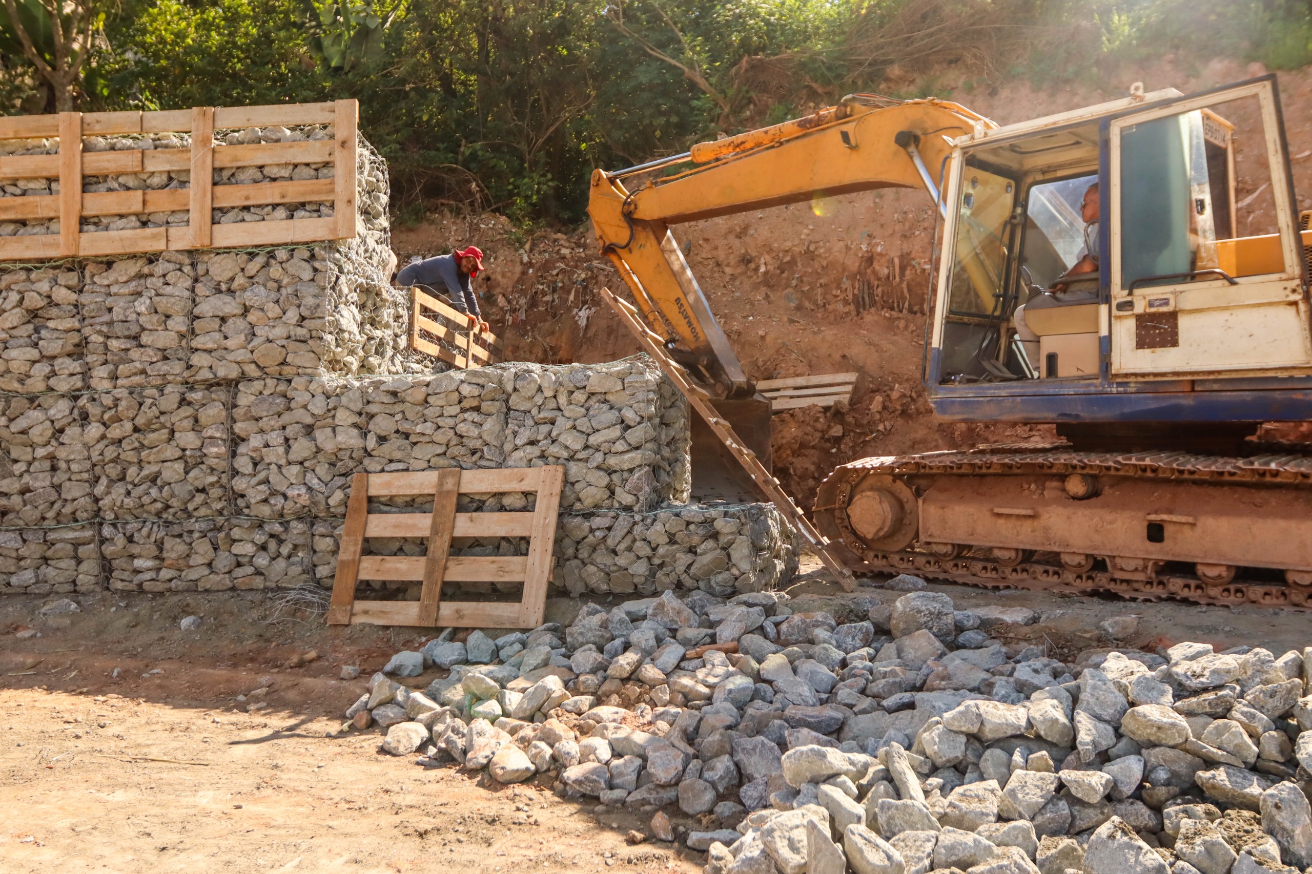 O segundo muro de construção só começa a ser construído, quando o primeiro em andamento for concluído. A Secretaria de Obras começou as obras em outubro deste ano, mas acertando o talude e retirando o excesso que interditou até parte da via. Agora, a execução do muro de arrimo com gabião – espécie de gaiola cheia de pedra está sendo construída no local: “O objetivo é ter drenagem no local. Quando chover, a água vai escorrer de forma drenada pelas pedras, que, em contrapartida, seguram o talude para ele não descer”, afirmou o secretário de Obras, acrescentando que estas obras darão maior segurança aos moradores do bairro. O segundo muro também terá 100 metros de extensão e altura de três metros e meio.