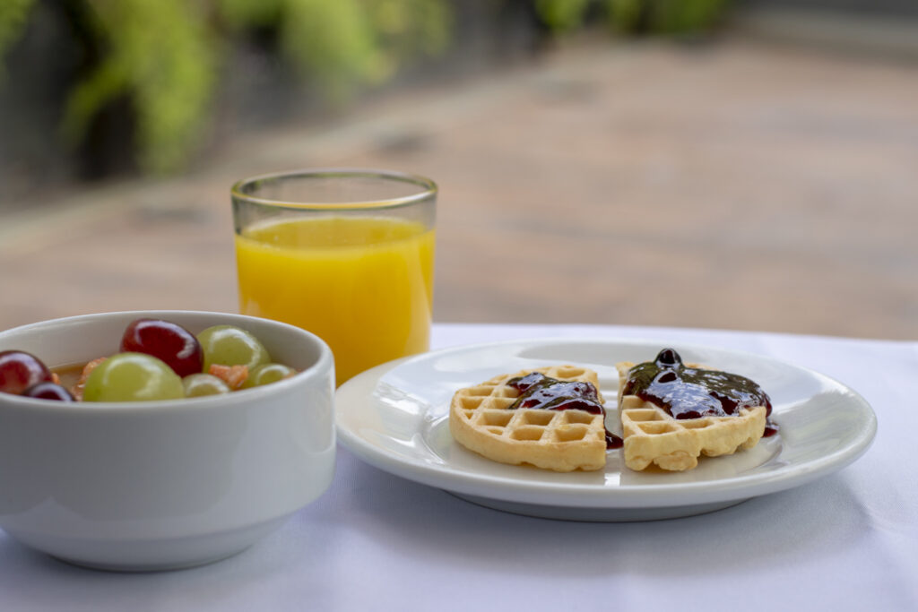 Servido diariamente, o café da manhã do WZ Hotel Jardins conta com um buffet farto com diversas opções fresquinhas para todos os paladares: frutas laminadas, seleção de frios, variedade de pães doces e salgados, bolos com cobertura à parte, iogurtes, cereais, bebidas e pista quente com ovos mexidos, bacon, salsicha, calabresa, pão de queijo e waffles. Há ainda itens funcionais, veganos e com zero lactose.